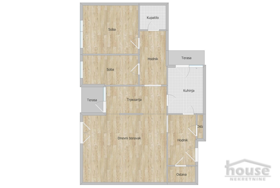 ID: 1065039 - Agencijska oznaka - 1065039 - CENA 235 000e + 3% agencijska provizija. Uknjižen trosoban sta na Limanu 1. Sastoji se od dnevne sobe, odvojene kuhinje sa trpezarijom, dve spavaće sobe, kupatila, dodatnog toaleta, ostave i terase. Veća (ljubičasta)